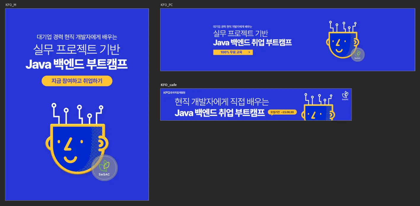 - MOB에는 양 여백으로 ‘취업 부트캠프’라고 넣을 수 없어 CTA 안에 취업 내용 넣었음