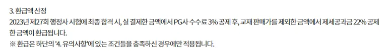 에듀윌은 환급액 산정 시 PG사 수수료 3% 공제 하고 있음.