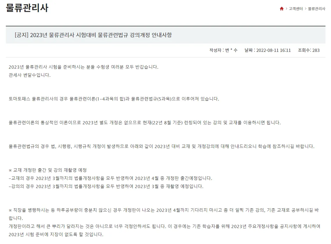 물류관리사 수험가이드, 최신 1회차 기출문제 및 가답안 파일을 무료회원에게 제공. 그 이전 회차 기출 자료는 유료회원에게 제공(구매유도)