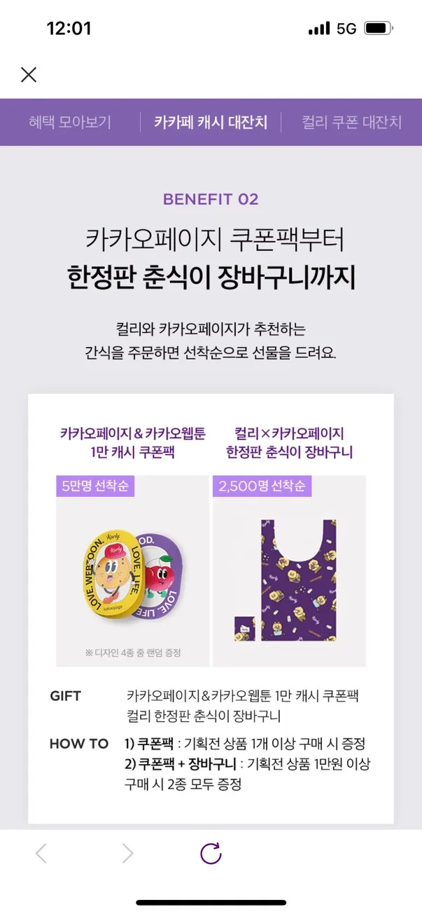 기획전 상품 1만원 이상 구매 시, 1만 캐시 + 장바구니 굿즈 제공