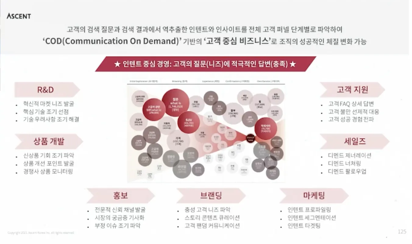 소비자의 관심 토픽과 인텐츠를 구매 여정에 따라 매핑하여 산업 전반을 한눈에 파악할 수 있도록 가시화 제공