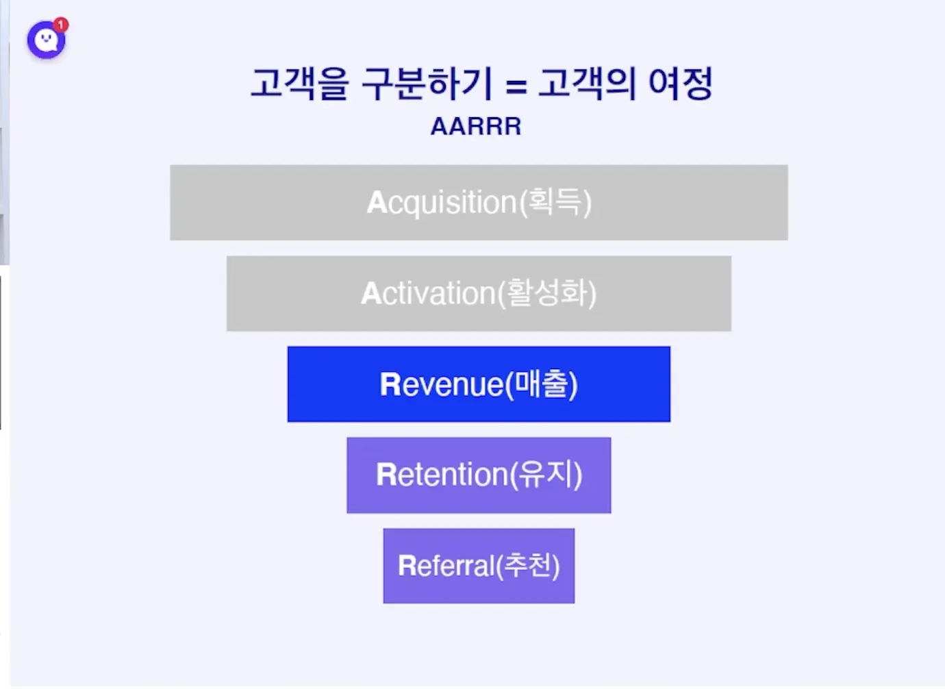 단계별 비율이 적어지는 이유는 단계를 넘어갈 때 이탈이 많기 때문. 이 이탈을 줄이기 위한 액션 필요