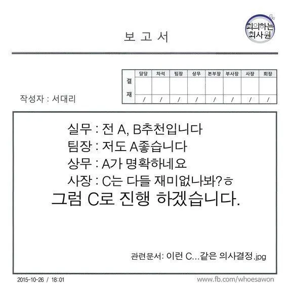 저는 팀장님께서 두괄식으로 명확하게 정리, 선택, 피드백해주실 때 진짜 쾌감을 느낄정도로 너무 속이 다 시원해요ㅜ 매번 팀원들끼리는 서로 배려한다고 의견을 존중해준다고 미괄식으로 이야기하다가 결론이 흐지부지되는 경우가 꽤 있는데 속으로 드는 생각이 “도대체 그래서 어쩌란말인가” 였거든요...ㅜㅜ 딱 깨끗하게 방향을 정리해주실때 행복합니다.