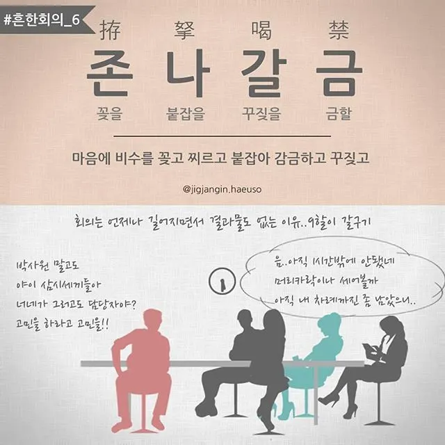 잦은 미팅은 업무에 도움되지 않음. 프로젝트 미팅은 목적, 안건, 진행방식, 결론을 명확하게 참석자들에게 공유하고 사전에 숙지할 필요가 있음.