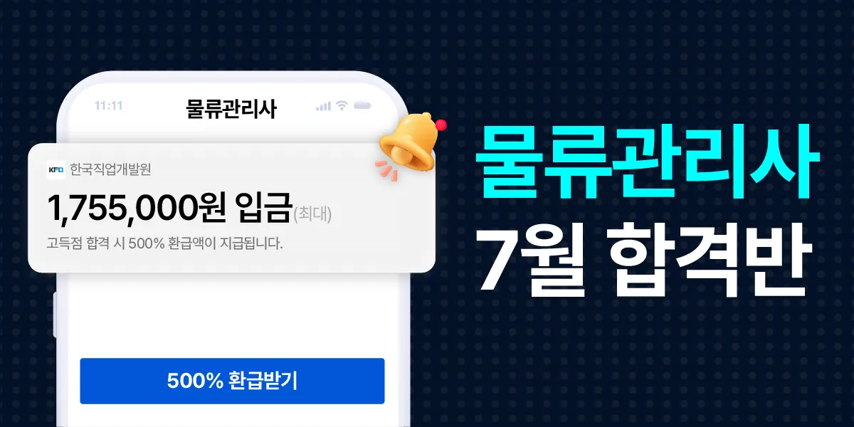 키메세지 | 5배 합격축하금 / 1,755,000원(최대) 입금 / 물류관리사 7월 합격반 |