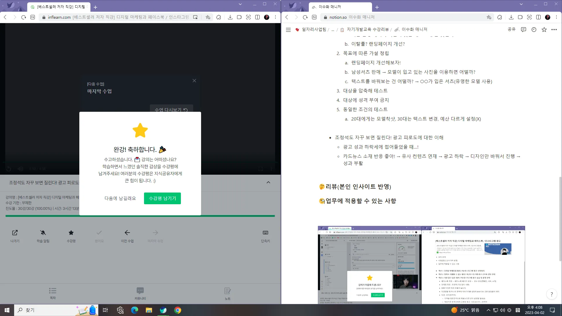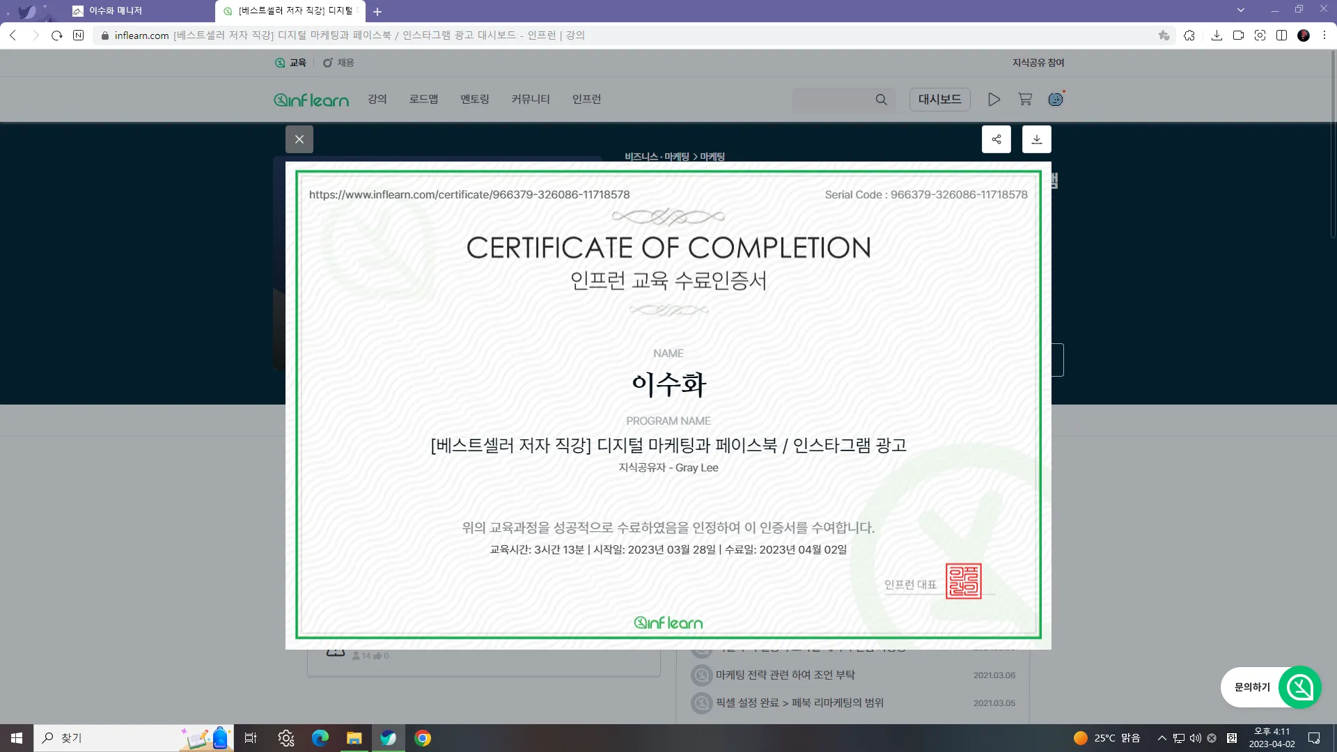 사실 뭐 국가에서 하는 강의도 아니고 그냥 인터넷 강의인데 수료인증서 뜨는 거 신기하고 그냥 뿌듯함(잠깐)