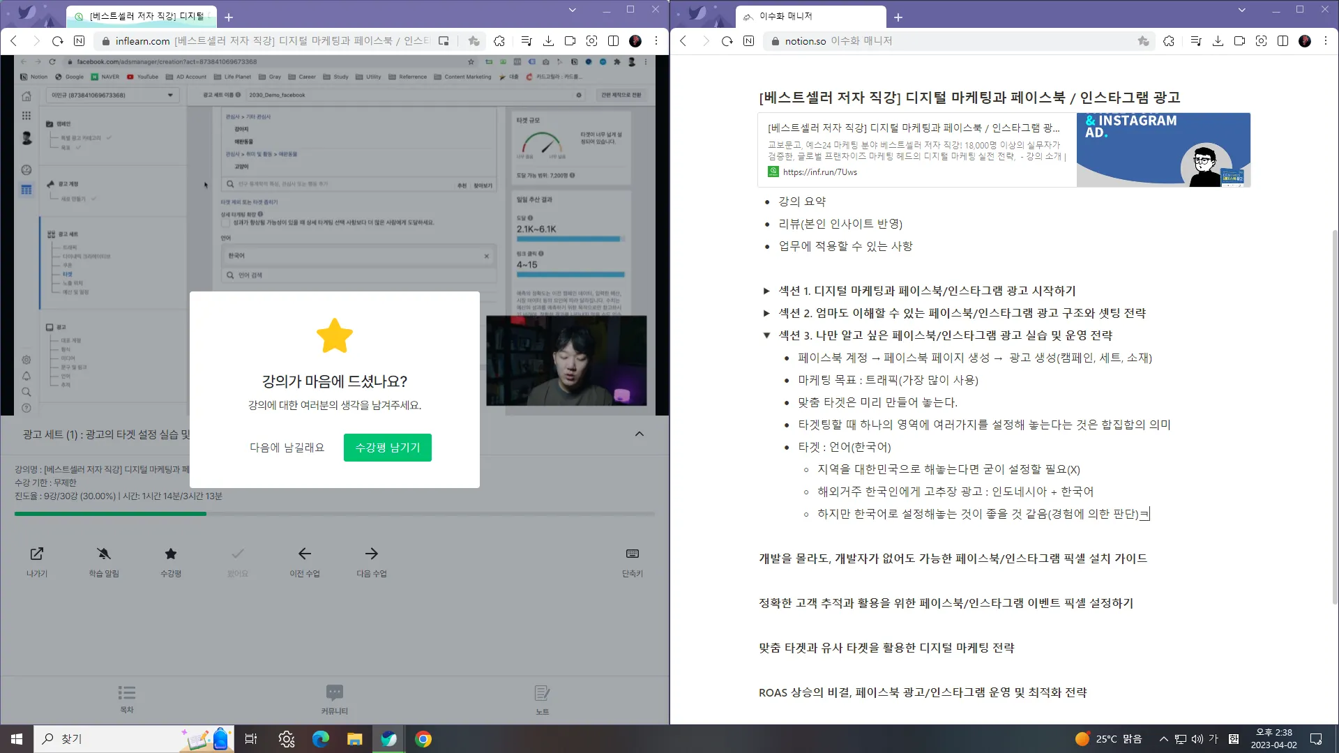 현재 내가 페이스북 광고를 전담으로 운영하고 있긴 하나 처음부터 제대로 알고 실무를 시작한 것이 아니기 때문에 기초부터 차례로 집어줘서 좋았음