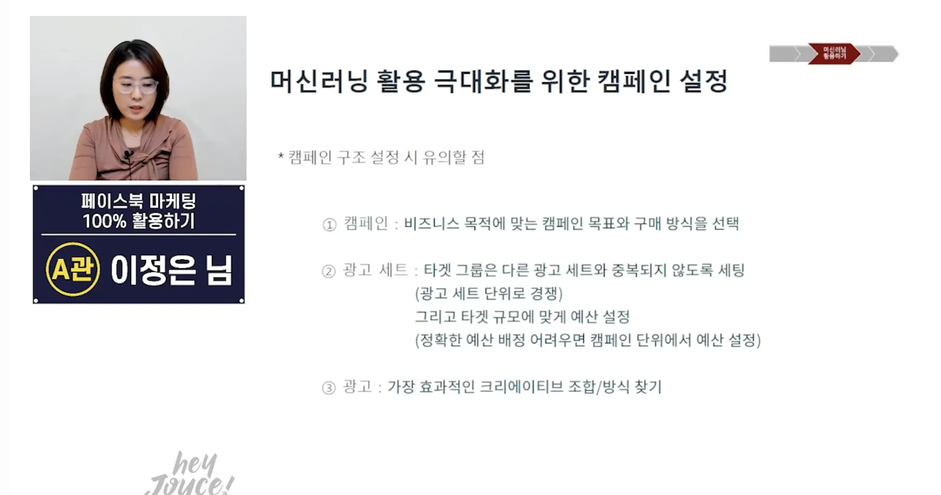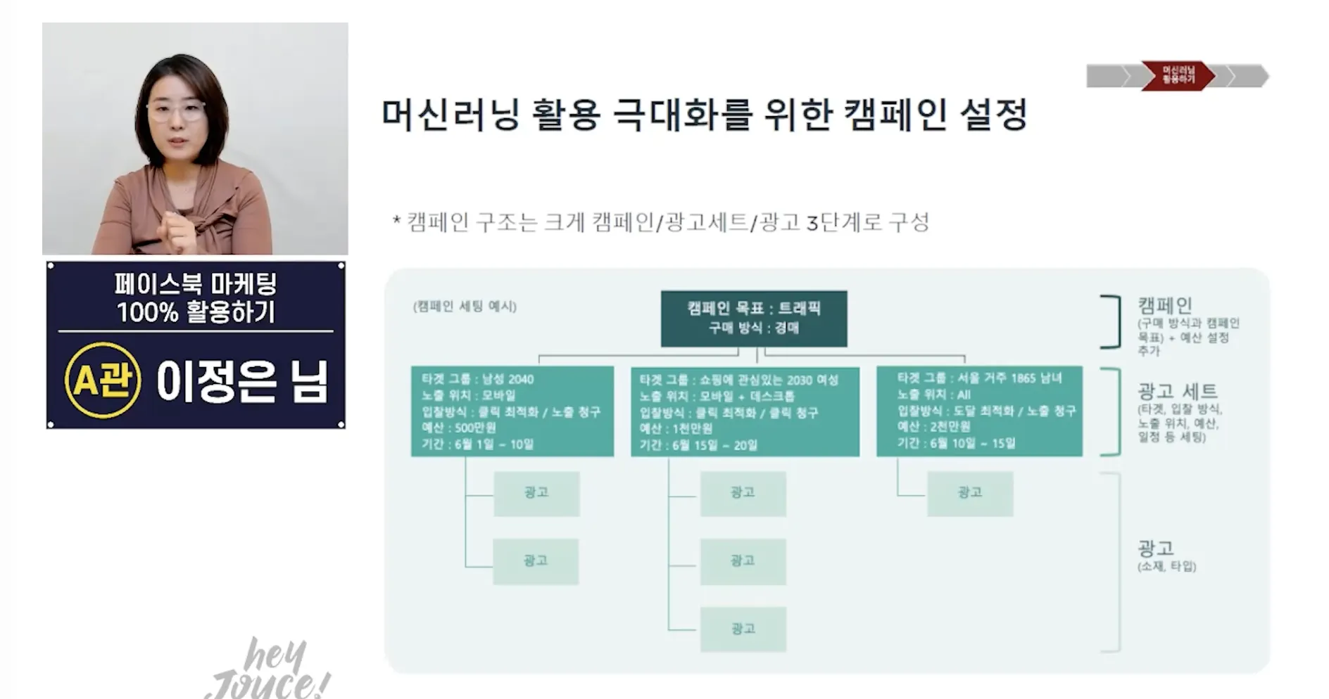가장 중요한 목표 설정 후 그에 맞는 캠페인 생성. 예산 적은 경우 캠페인 안에서 확장시킬 것.