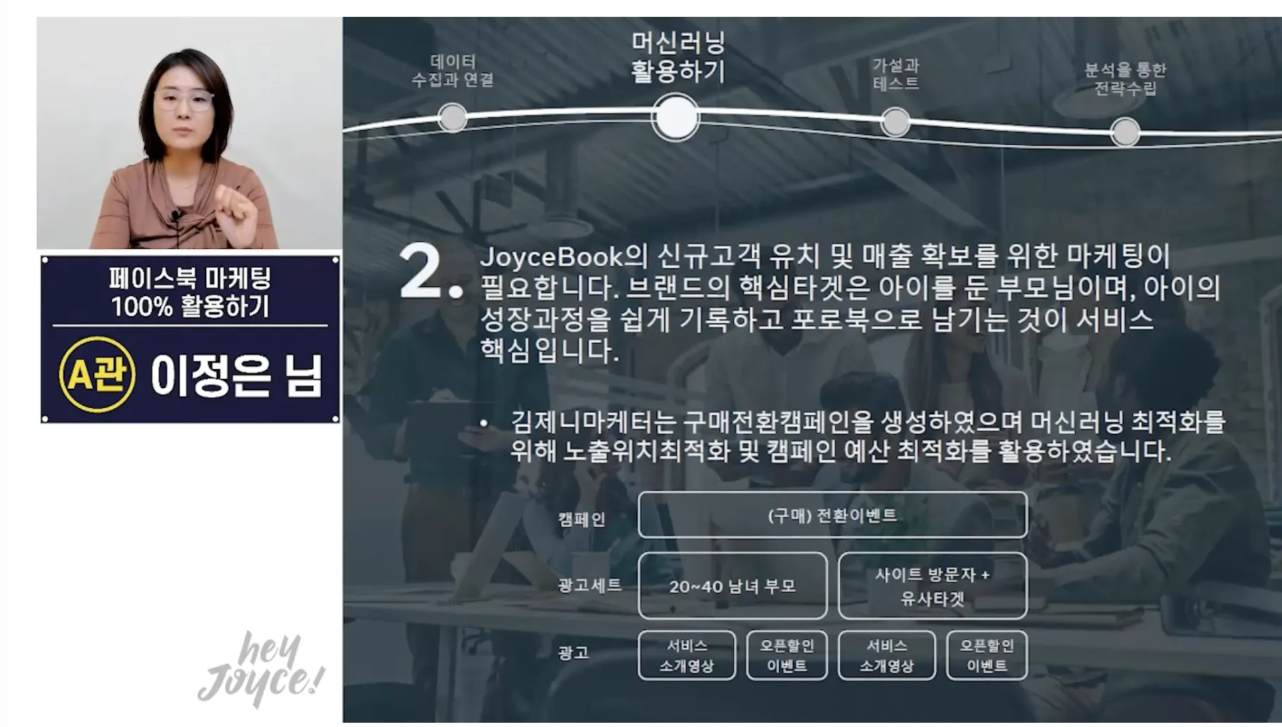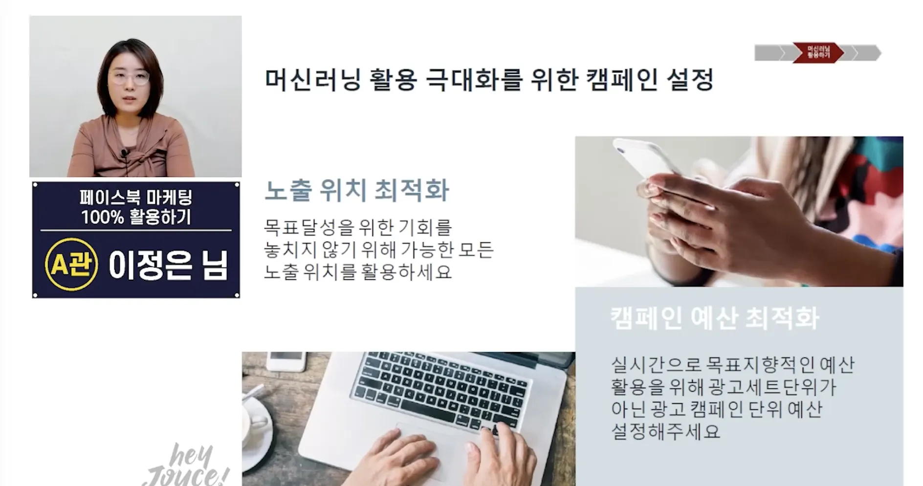 퍼널(전환) 이해 후 필요한 목표 캠페인 설정. 직관에 의존하지 마라. 머신러닝이 스스로 학습하여 데이터 기반 결과 도출할 있도록 한다. 머신러닝 극대화하는 방법. 노출영역에 적합한 크리에이티브는 더욱 높은 효과 기대(인스타그램 기능 활용)