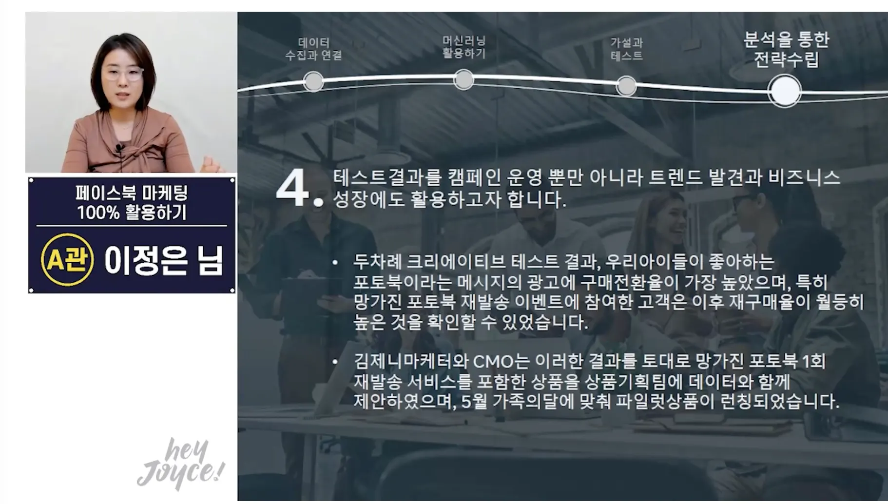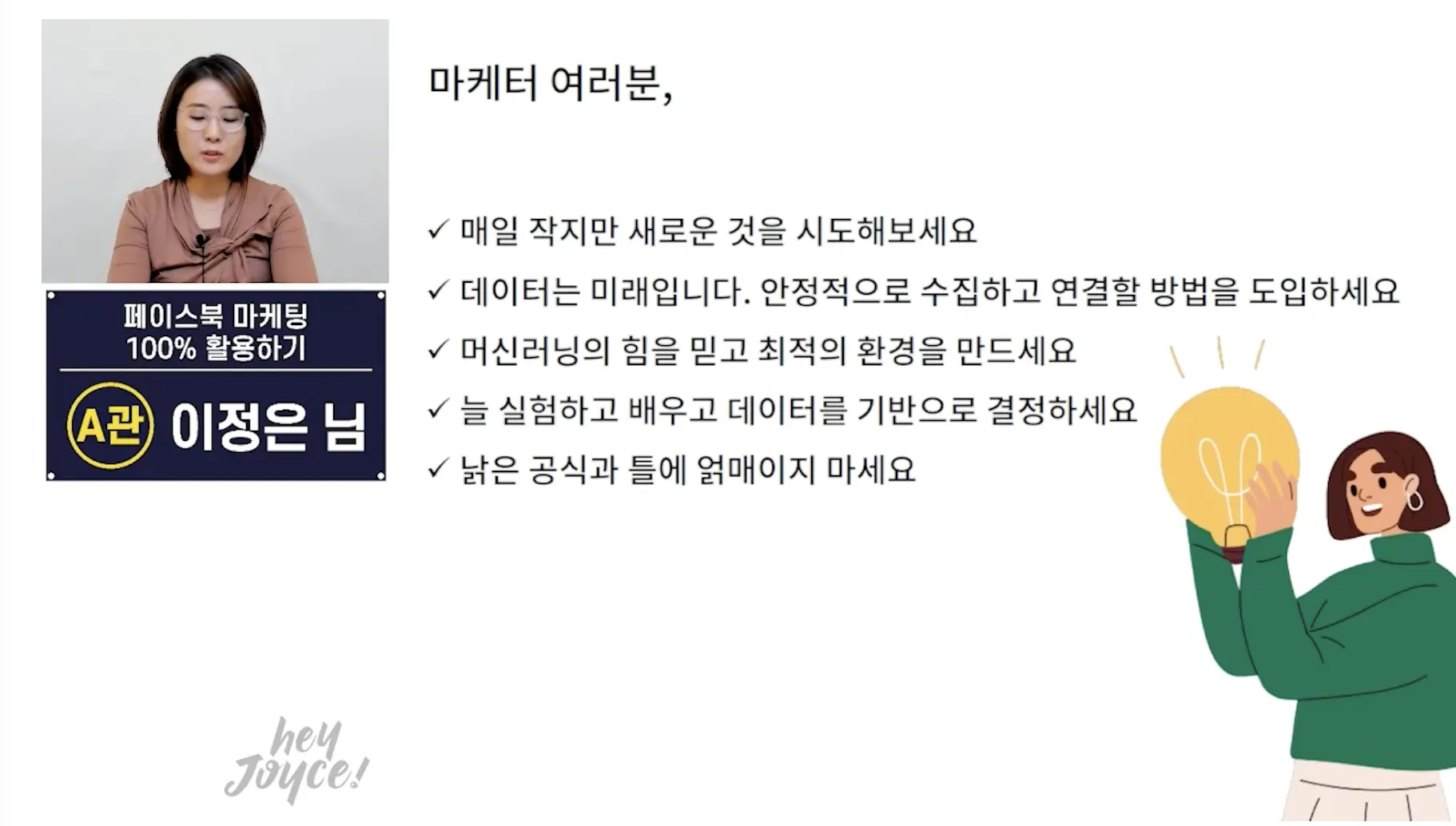 페이스북이 복잡하고 결과에 의한 근거가 다양하기 때문에 힘든 부분이 있을 것이다. 그러나 확실하게 페이스북 ROAS가 좋아서 예산 더 쓰고 싶다는 광고주도 분명히 있다. 경쟁이 심화되는 것은 사실이지만 캠페인 최적화 후에는 브랜드 메시지 발굴이 반드시 필요하다. 내 예산투입 뿐만 아니라 사용자 가치, 적합성이라는 요소도 포함된다. 사용자에게 적합하게 도달할 수 있는 매력적 크리에이티브 발굴이 필요하다. 데이터의 오픈이 100% 이루어지지 않는 현재 시대에는 광고로 인한 성과라고 측정하기 어려운 부분이 있다. 지금 당장 도달하지 않은 부분에 대해 도달하는 방법을 찾아보는 테스트가 필요하다.