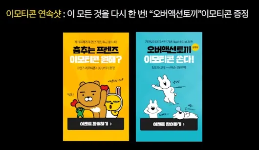 오히려 TV에서 이모티콘 프로모션 캠페인을 활발하게 하고 이 후에 브랜딩 광고 진행함.