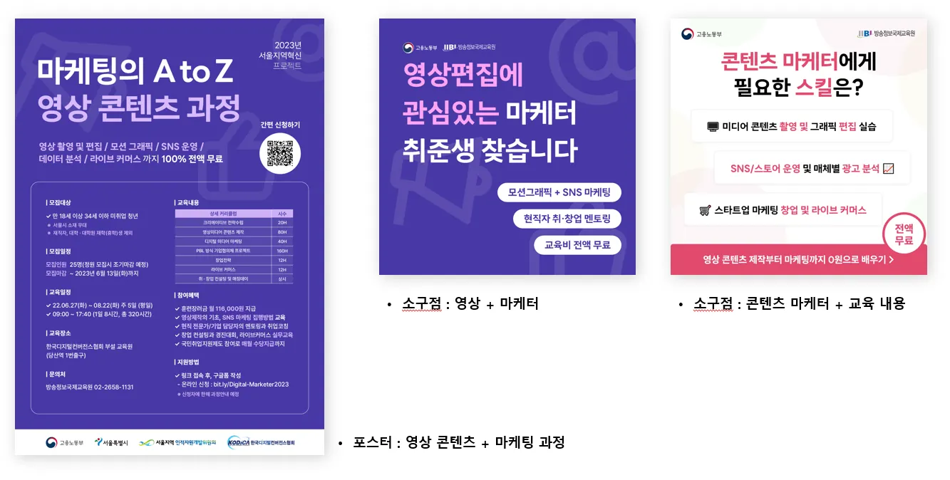 오히려 배우는 과정에 대한 핵심 사항들과, 수강료0원이라는 점을 배너에서 강조했으면, 그 내용이 통일감 있게 구성되면 좋을 것 같습니다.