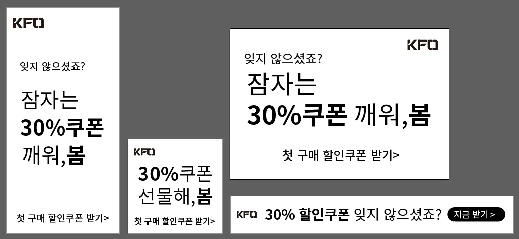 DA 는 웹사이트에 여러 배너 노출되는 만큼 다양한 디자인 요소보다는, 카피가 잘 읽힐 수 있는 폰트와 색상이면 좋겠습니다!